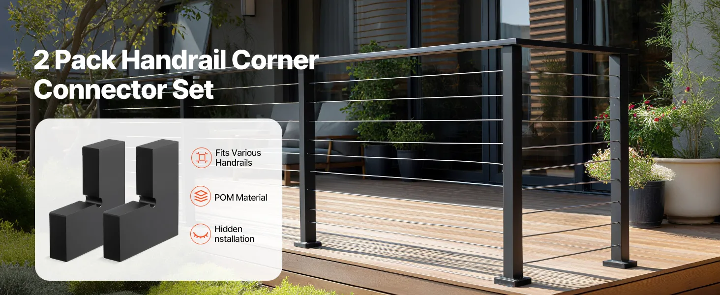 This universal connector fits 2 x 1 inch handrails. Made from high-quality POM, it’s scratch-resistant and impact-resistant. The hidden installation enhances stability and aesthetics, ideal for both indoor and outdoor use to create stylish handrails.