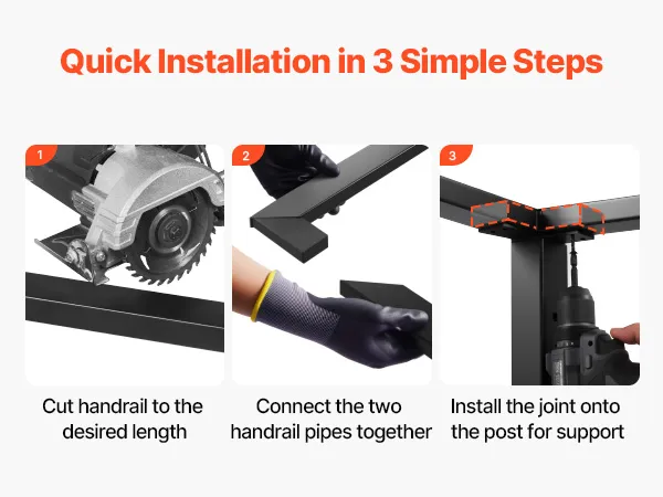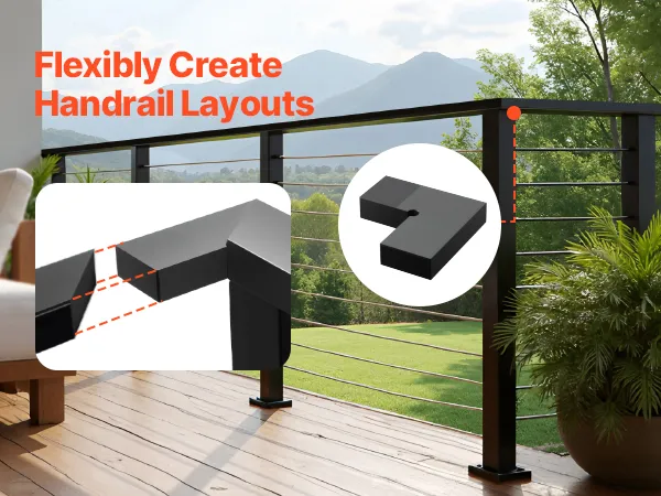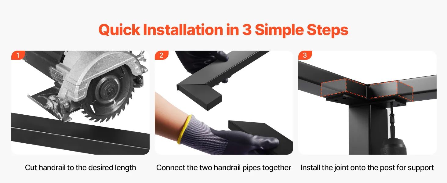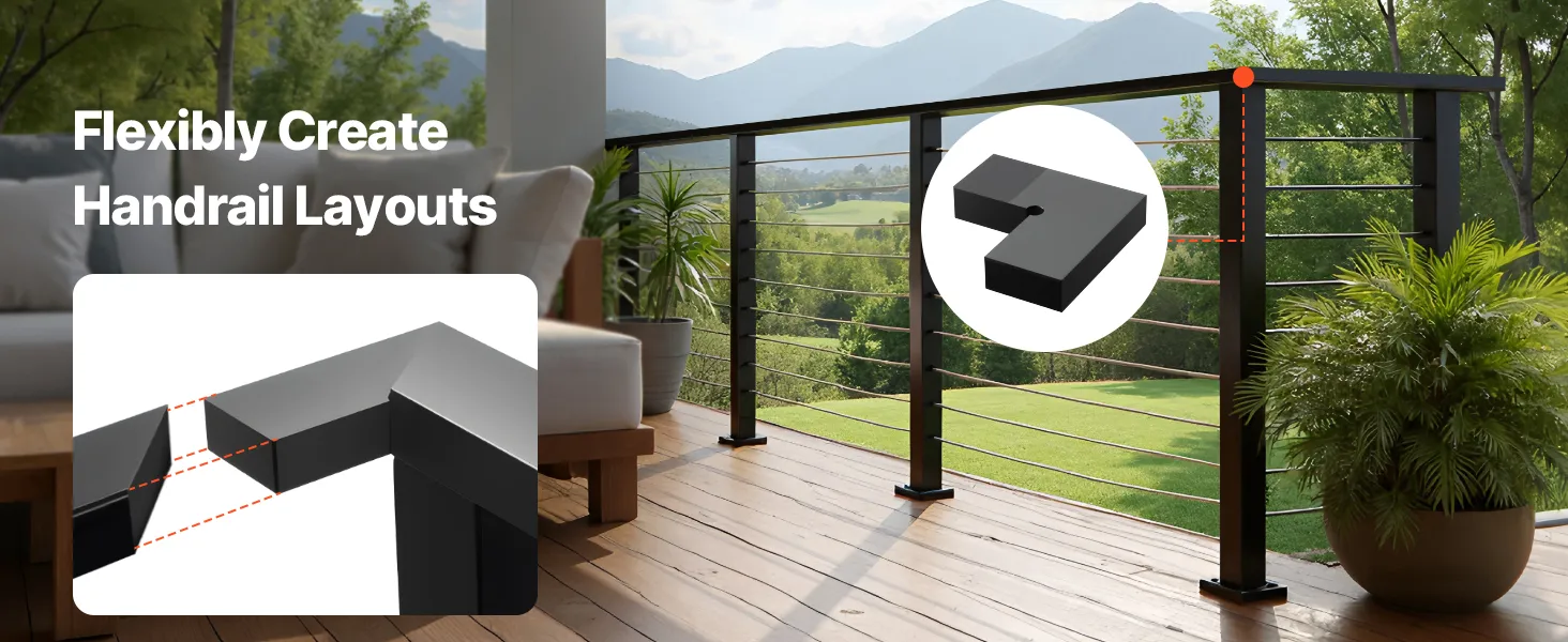 Corner Connection: The 90-degree corner connection allows for a ideal handrail corner layout. This simple design ensures a secure connection, making your space cleaner, more aesthetically pleasing, and easier to use
