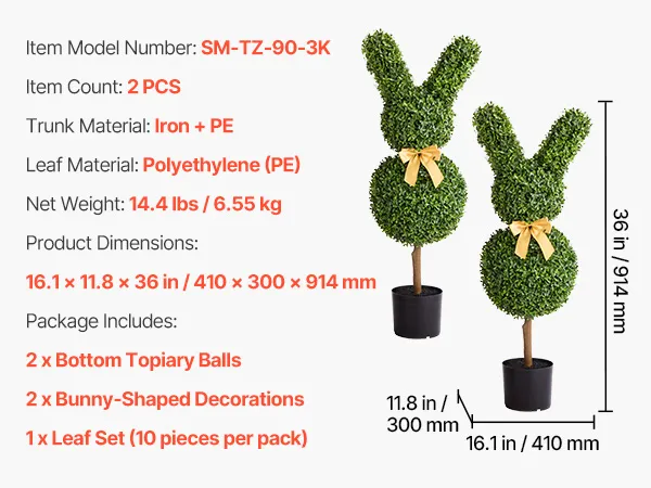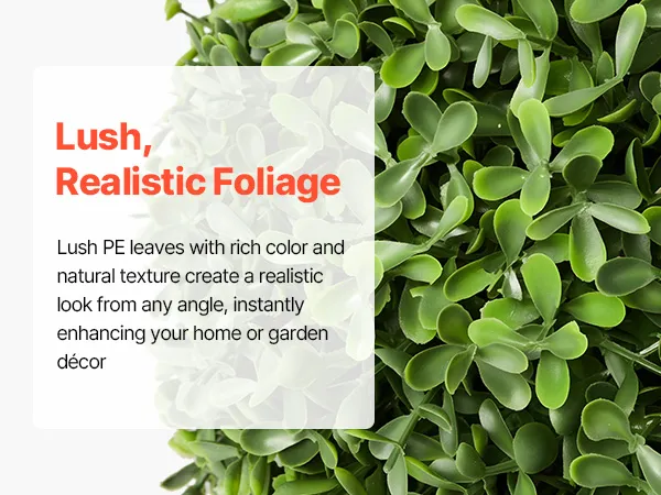 Realistic & Lifelike Look: These 36-inch artificial topiary trees feature lush, dense PE leaves with natural color variations and realistic textures. The reinforced trunk and neatly shaped foliage create an elegant, stays beautiful year-round
