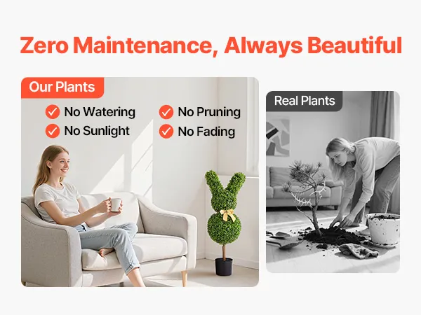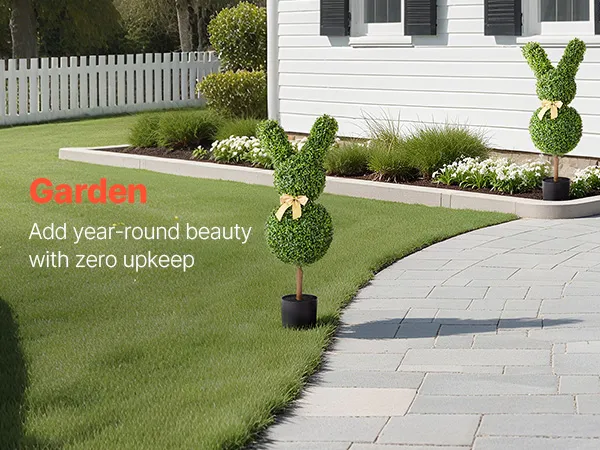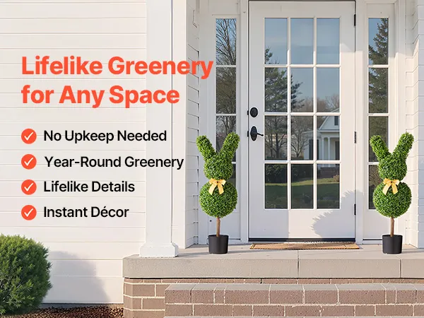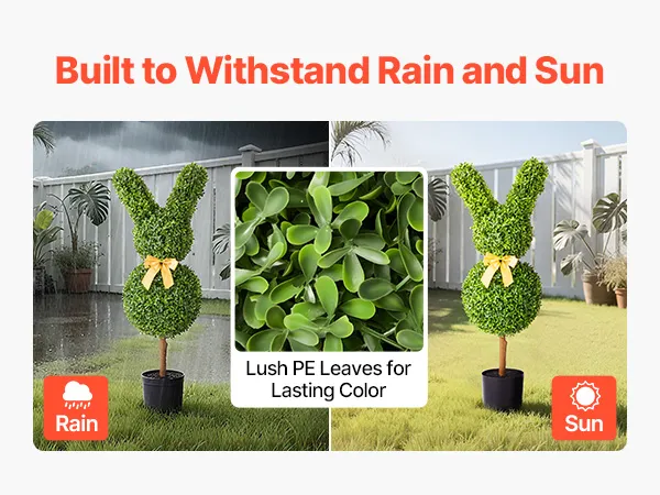 Sturdy & Weather-Resistant: Crafted from premium PE material, these topiary trees withstand sun, rain, and wind without fading or deforming. Ideal for both indoor and outdoor spaces, offering long-lasting greenery with zero upkeep