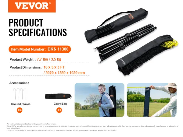 Material durável: Feita com malha de polietileno, mangas laterais de 10 cm e acabamento superior e inferior, a rede de vôlei infantil é resistente a rasgos, proporcionando segurança e durabilidade confiáveis. Estacas de solo fixam os postes com segurança e oferecem estabilidade adicional, garantindo que a rede permaneça esticada mesmo durante jogos vigorosos.
