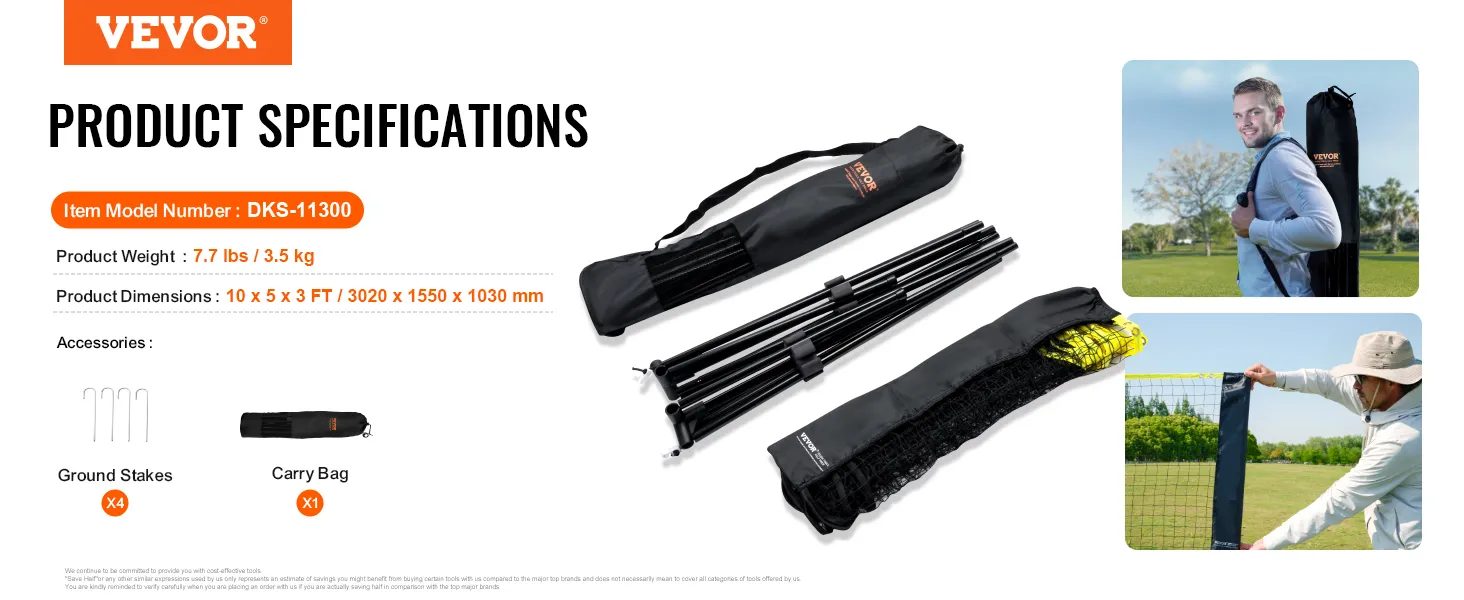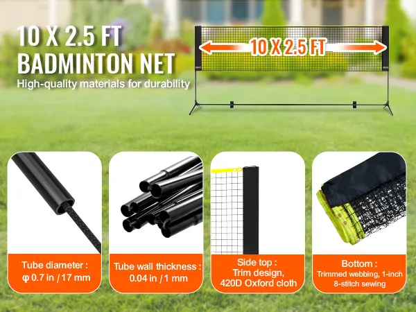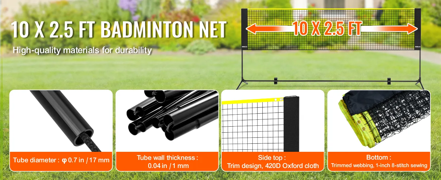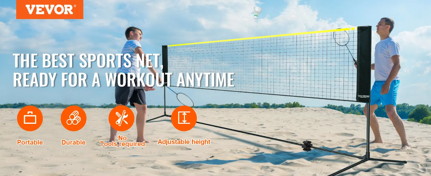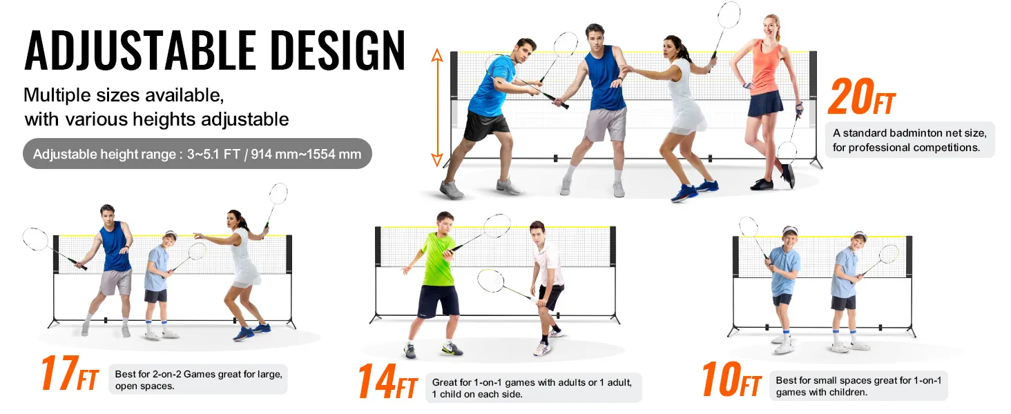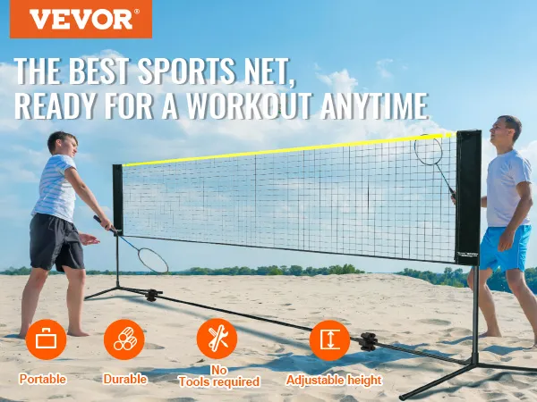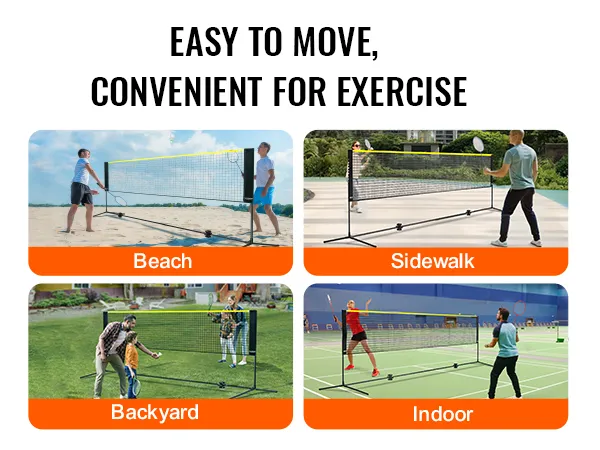 Rede Multiesportiva: Esta rede esportiva dobrável está disponível em quatro larguras (3, 4, 5, 6 e 6 metros) com altura ajustável (90 a 1,5 metro), tornando-a ideal como rede de tênis, rede de badminton ou rede de vôlei infantil. Use-a no seu quintal, na praia, na entrada da garagem ou em qualquer área plana. Divirta-se em qualquer lugar, a qualquer hora!