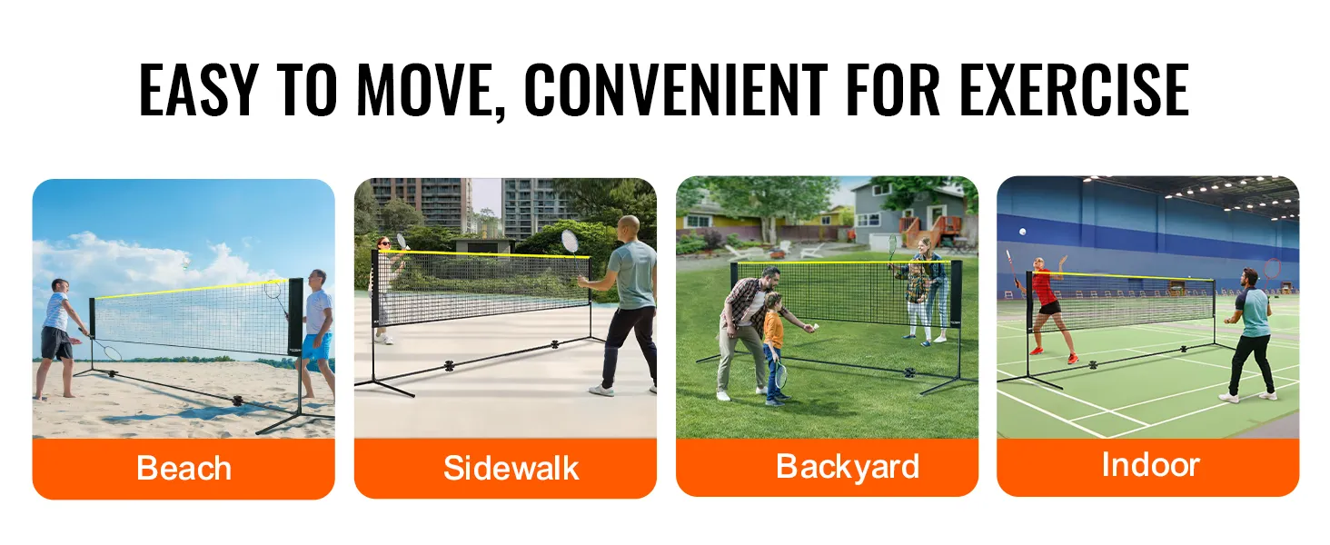 Nossa rede portátil multiesportiva é mais do que apenas uma rede de badminton; ela também é adequada para pickleball, tênis, futebol, tênis e vôlei casual.