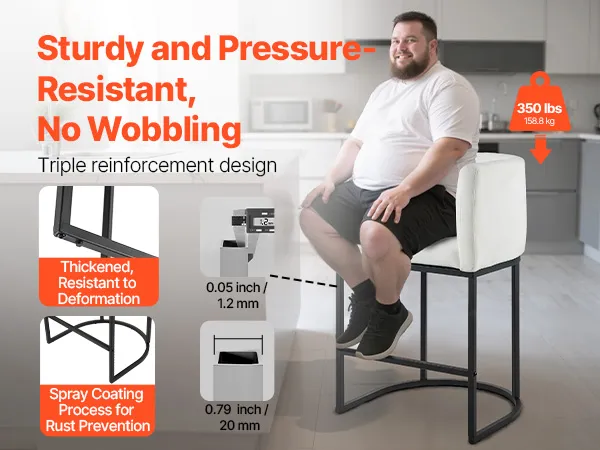 Strong and Stable Weight Support: The bar stools feature thickened iron pipes with stable structure, offering a maximum weight capacity of up to 350 lbs / 159 kg. The stool legs are coated with a spray finish for rust and scratch resistance