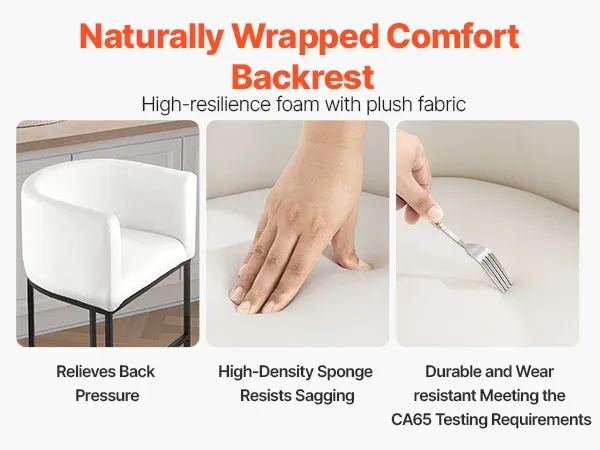 Thickened Comfort Backrest: The barstool is equipped with a wide backrest that follows the natural curve of the spine. The extra-thick padding delivers a sofa-like wrapped feel, ensuring comfort during meals, work, or gatherings without back strain