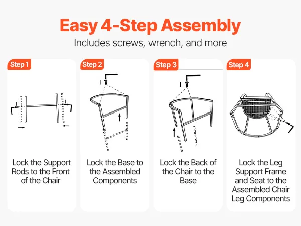 You can complete the assembly in 4 simple steps without the need for a power drill. It comes with necessary tools for easy assembly, saving you time and effort. Even beginners can easily complete the setup and enjoy a hassle-free experience.