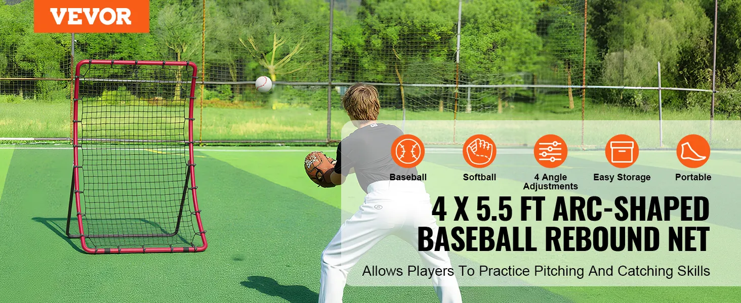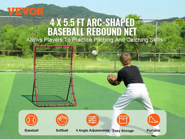 Rede de rebote para beisebol e softbol VEVOR, ninho de arremesso de beisebol PitchBack de 4 x 5,5 pés, rede de rebote para treinamento de retorno de arremesso com alvo de arremesso, rede de rebote para campo em todos os ângulos para rebatedores de base, pop flys