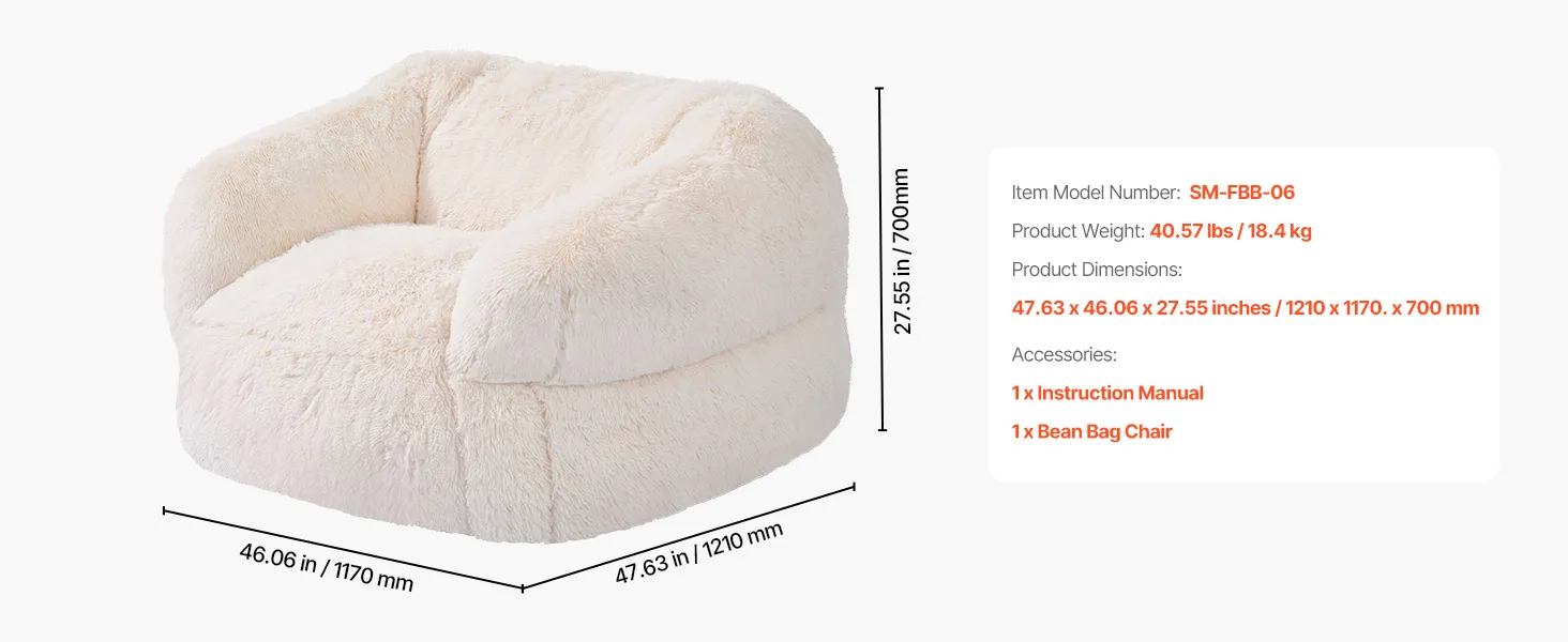 Versatile for Any Space: Whether it's for a playroom, bedroom, or living area, this bean bag chair fits seamlessly into any room, adding both style and functionality to your home.
