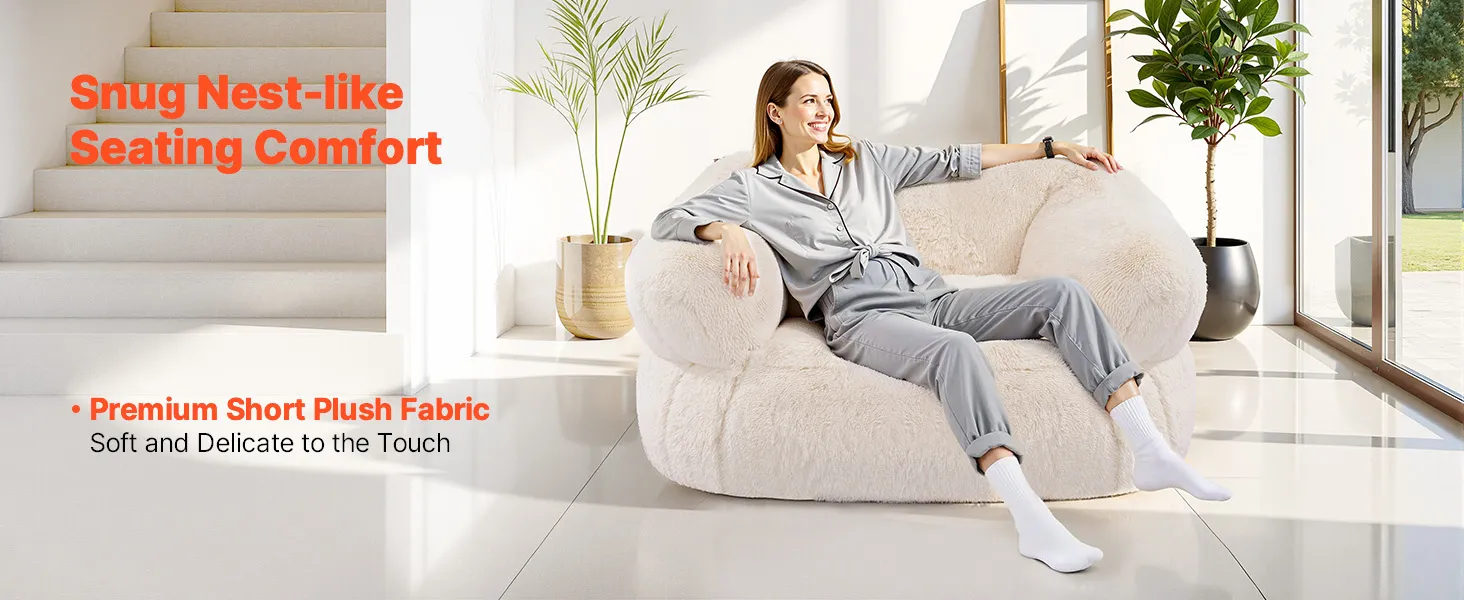 VEVOR Bean Bag Chair, BeanBag Sofa Chair with Armrests for Adults, Fluffy Plush & High-Density Foam Filling Adult Bean Bag with Zapper, Comfy Lazy Sofa Chair Ideal for Living Room, Bedroom, Beige