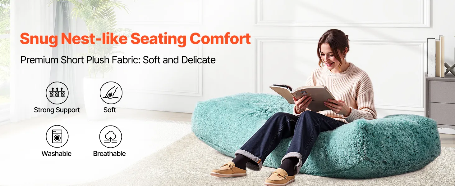 No Assembly Required: Forget about complicated setup! Just unpack it, let it puff up for 24-48 hours, and you're good to go. This beanbag chair is ideal for lounging while watching TV, reading, or just relaxing after a long day.