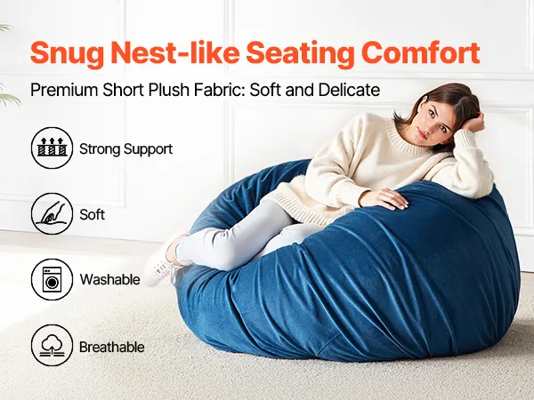 No Assembly Required: Forget about complicated setup! Just unpack it, let it puff up for 24-48 hours, and you're good to go. This beanbag chair is ideal for lounging while watching TV, reading, or just relaxing after a long day.
