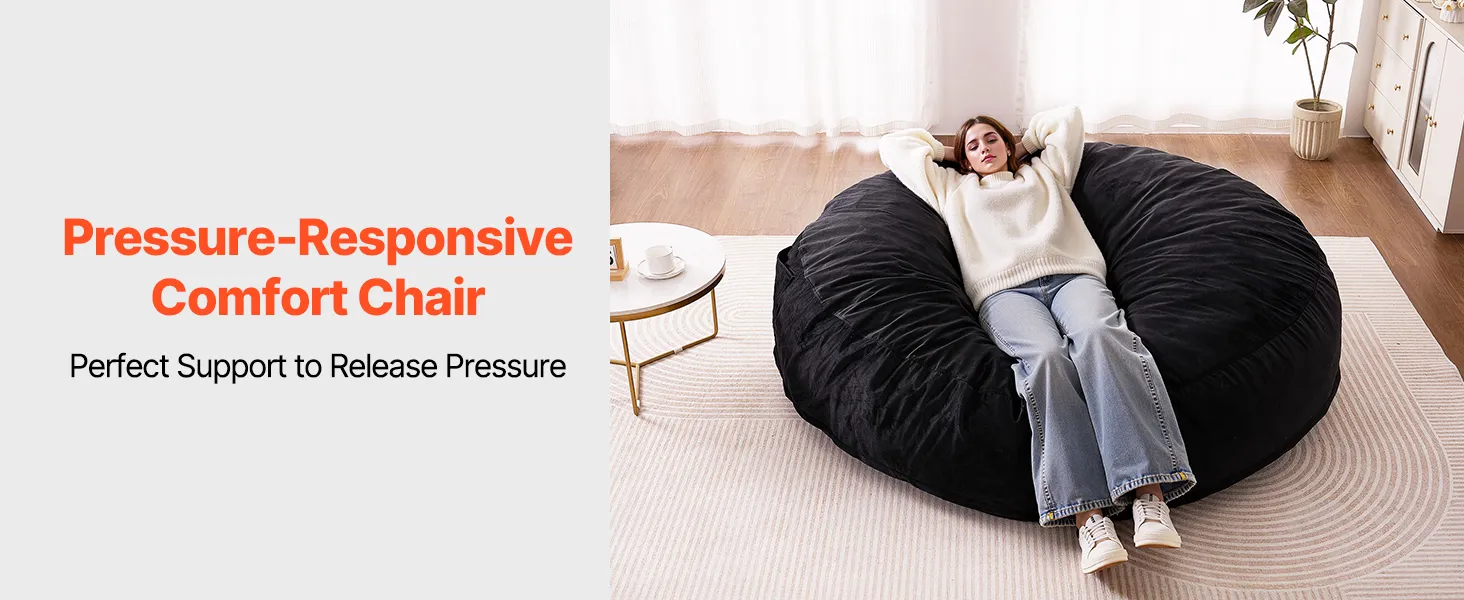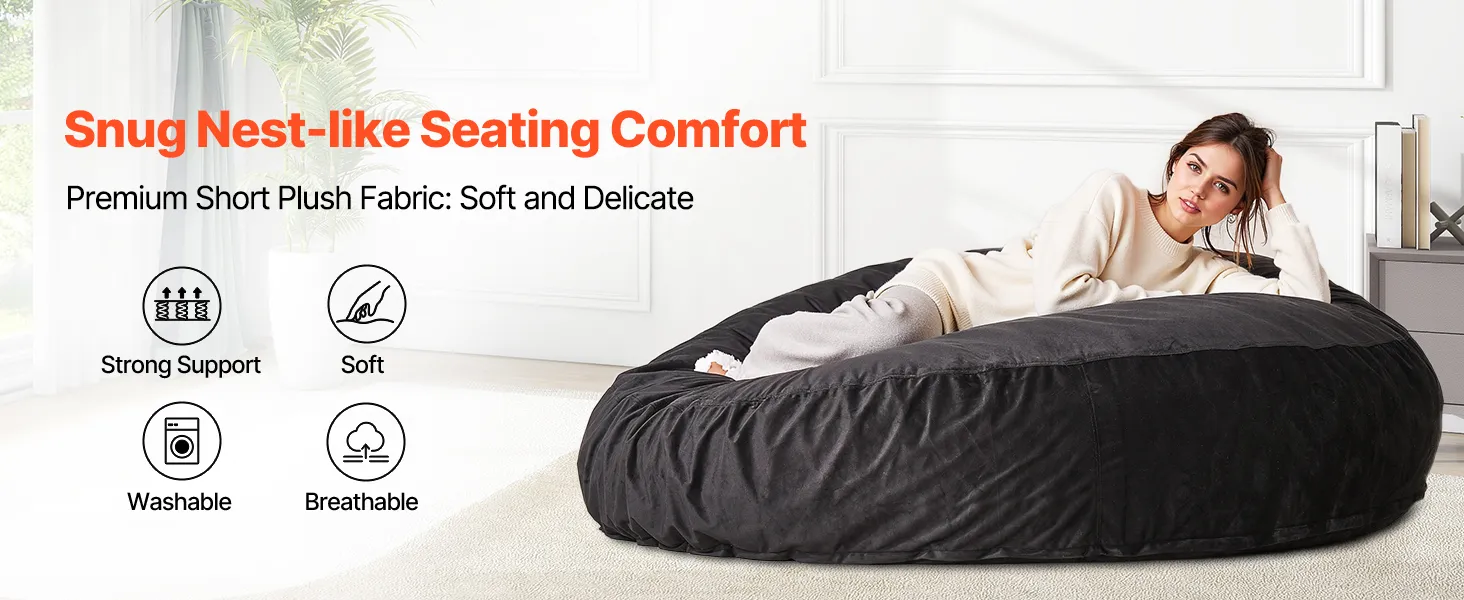 No Assembly Required: Forget about complicated setup! Just unpack it, let it puff up for 24-48 hours, and you're good to go. This beanbag chair is ideal for lounging while watching TV, reading, or just relaxing after a long day.