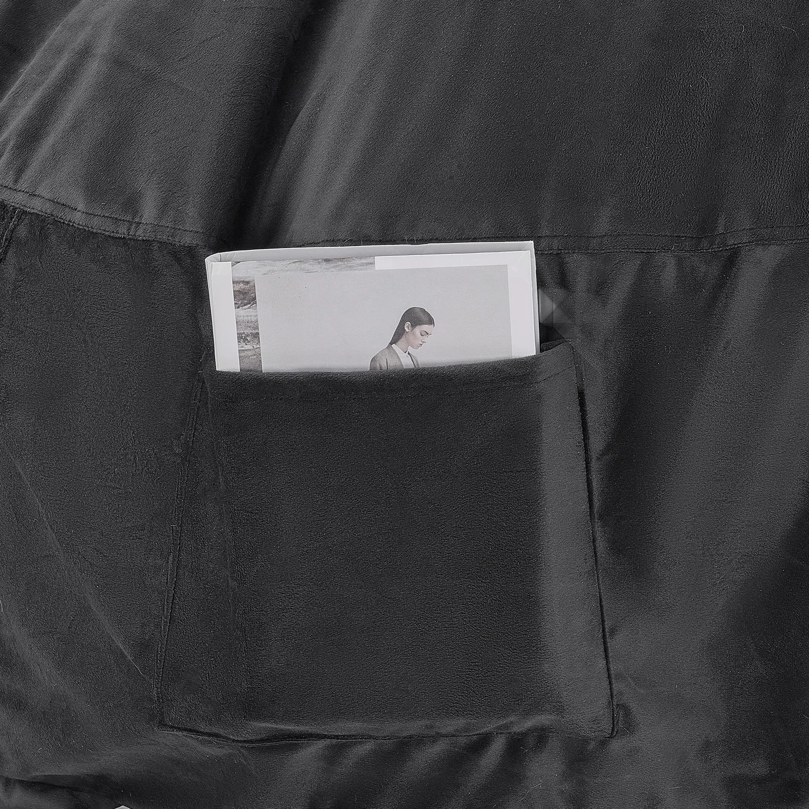 VEVOR Bean Bag Chair, Giant BeanBag Chair with Removable & Washable Cover for Adult, Dutch Velvet & High-Density Foam Filling Round Bean Bag with Handle and Side Pocket for Living Room Bedroom, Black