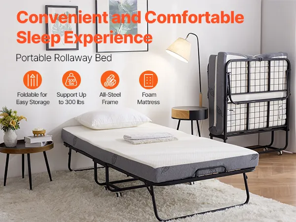 Den udtræksbare seng er nem at bruge og kan nemt foldes sammen og ud. Dens stærke støtte og komfortable madras sikrer en sikker og afslappende søvn. Den er vedligeholdelsesfri og nem at rengøre, hvilket gør den ideel til forskellige miljøer og midlertidige søvnbehov.