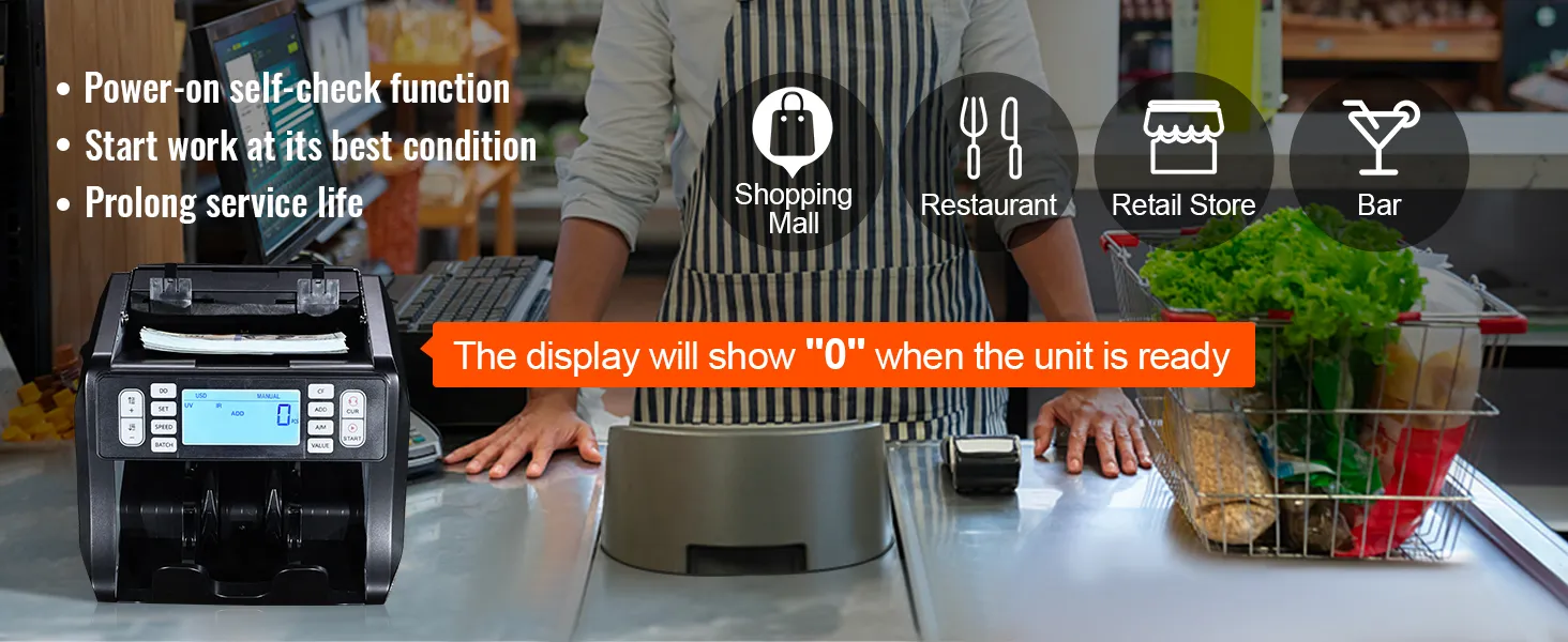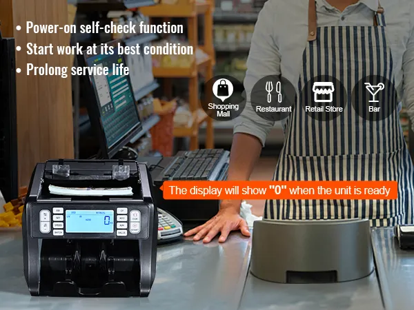 Naše pokladní počítačka má funkci automatické kontroly při zapnutí pro optimální výkon, přenosnou rukojeť pro snadnou přepravu a kompletní balení se vším, co potřebujete k okamžitému zahájení počítání hotovosti. Je ideální pro malé podniky, čerpací stanice, maloobchodní prodejny, restaurace, bary a další.