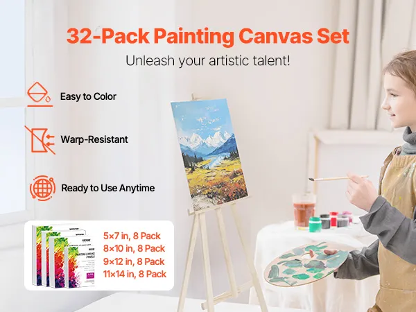 Výhodné balení: Sada 32 pláten na malování různých velikostí uspokojí vaše rozmanité potřeby. Ať už jste samostatný umělec pracující na více dílech, nebo skupina zapojená do společných uměleckých aktivit, tato sada je pro vás ideální.