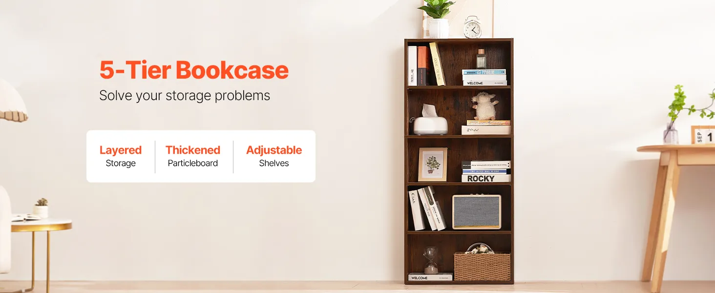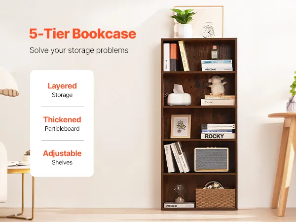 Všestranná 5patrová knihovna: Maximalizujte svůj prostor s touto 5patrovou knihovnou (23,5 x 9,3 x 53,0 palce / 598 x 237 x 1345 mm). Tato otevřená knihovna se perfektně hodí do jakéhokoli rohu vašeho obývacího pokoje, pracovny nebo ložnice a umožňuje vám snadno vystavit knihy, fotografie a dekorativní předměty.