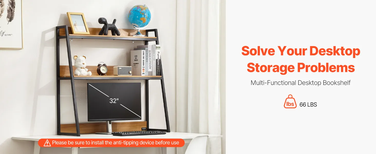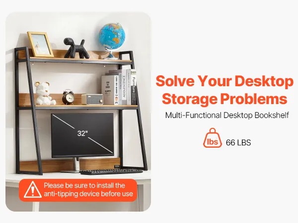Rozlučte se s nepořádkem s naší stolní knihovnou. Police o tloušťce 0,5 palce unesou až 66 liber / 30 kg, což je ideální pro knihy, fotografie, sluchátka a dekorace. Dokáže uspořádat kancelářské složky, knihy a další věci doma i v práci.