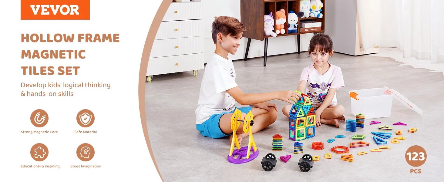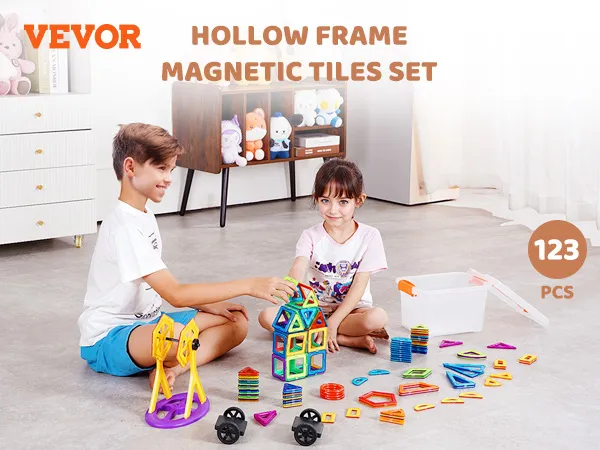 VEVOR Magnetiske Fliser, 123 Deler Magnetiske Byggeklosser For Barn, Magnetbyggesett Med Hjulgrupper Og Pariserhjul, STEM Pedagogiske Konstruksjonsleker Som Gave For Småbarn Gutter Jenter Fra 5 År
