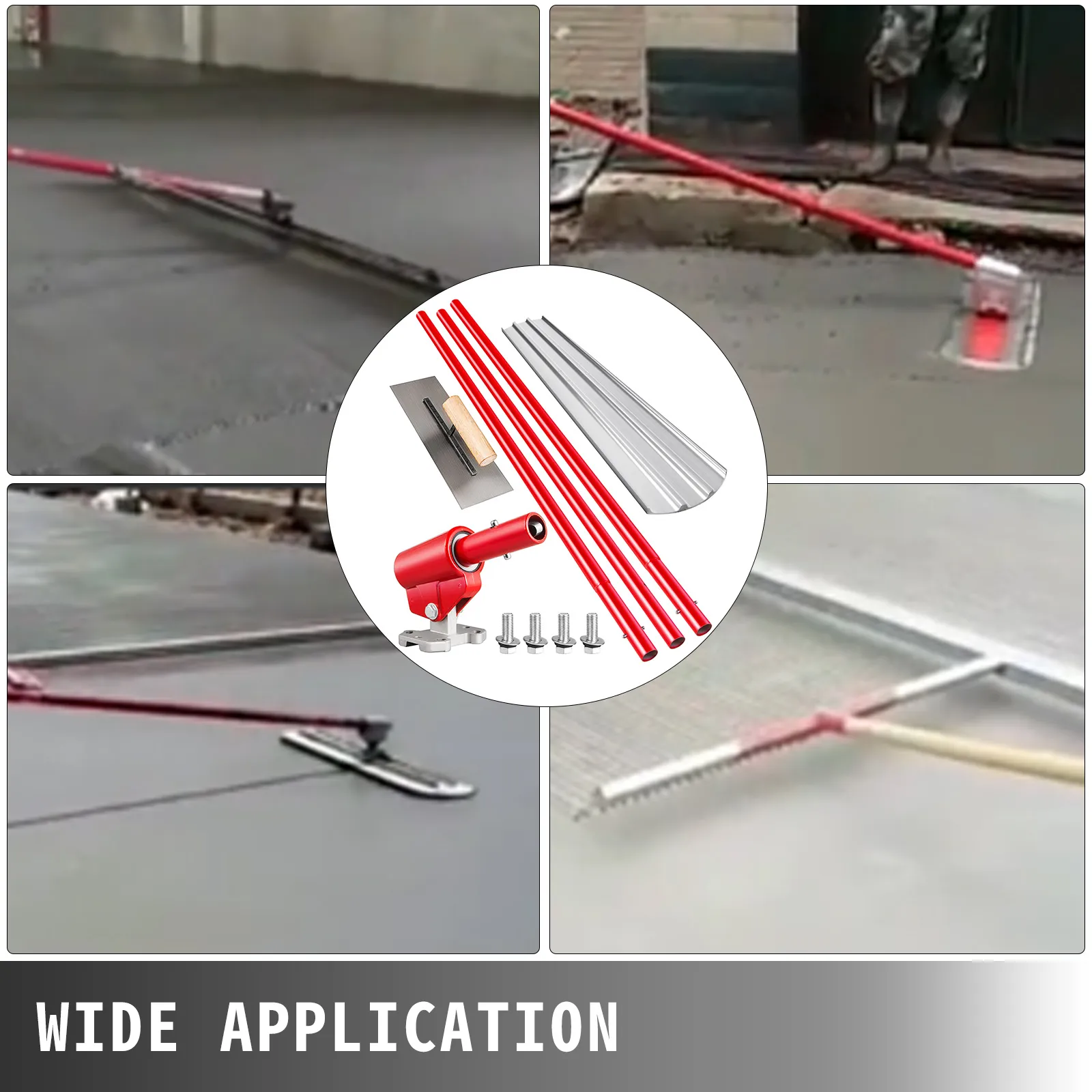 The trowel blade made of magnesium steel, sturdy, durable, unreformed, and smooth in surface, The bull float tool with red spray steel handles can manage the finishing work easily.