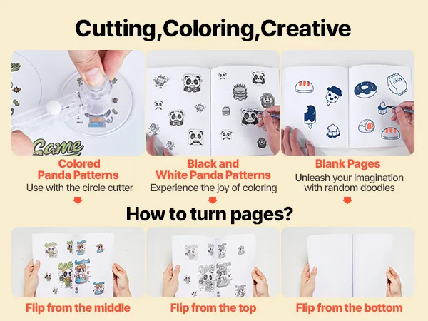 Exclusive Fun: The button press machine includes a magic book with three fun activities: colorful Panda designs to cut out, black-and-white Panda designs for coloring, and blank pages for creativity. Carry the cute Mr. Panda badge to look cooler