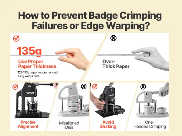 High Success Rate: Precision molds and alignment guides help avoid tilted designs, ensuring ideal outcomes every time. It is recommended to use 127-157g paper (135g performs especially well). Avoid mold shifting while using the pin maker