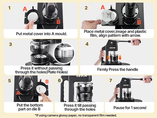 You can align the center of your design with the mold using the guide marks on the button pin maker, helping avoid issues like off-center images or slanted text and improving the overall success rate.