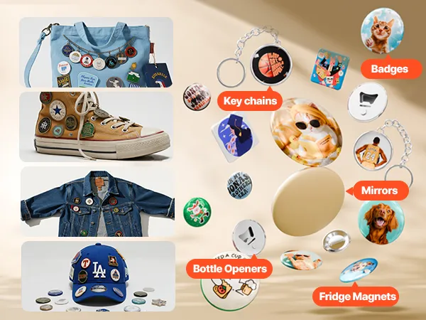 Make Personalized Gifts: Design custom badges for any occasion. Our button making machine also works with mirrors, keychains, bottle openers, and magnets—turn your creativity into one-of-a-kind, heartfelt keepsakes