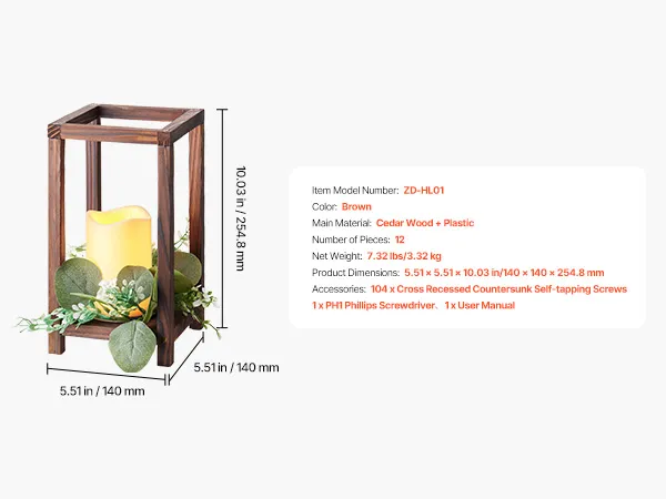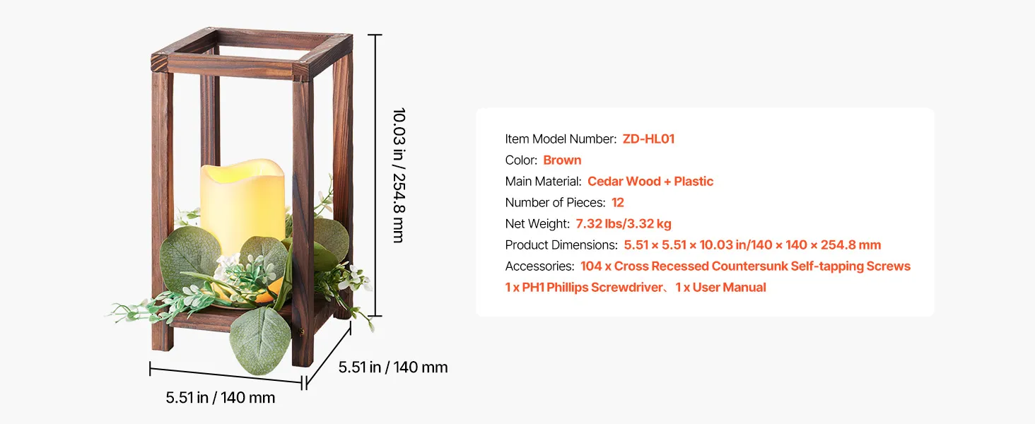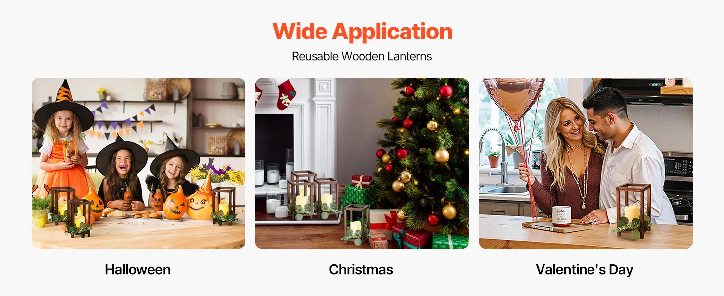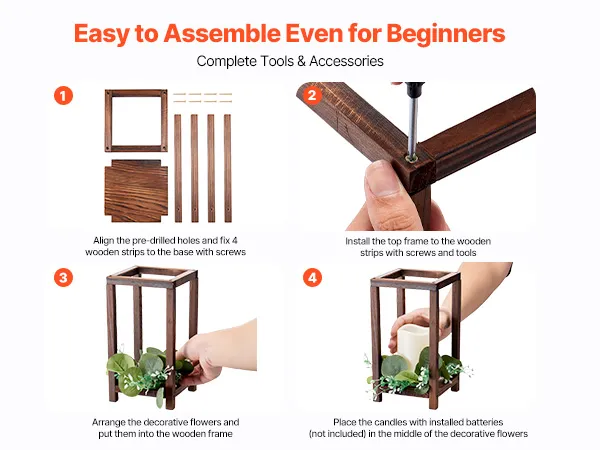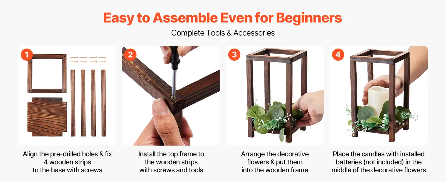 Easy & Quick Assembly: These wood lanterns come with enough screws and a dedicated screwdriver. With pre-drilled holes and an illustrated user manual, they are simple to set up with no extra tools needed, even for beginners. Save time on decor preparation