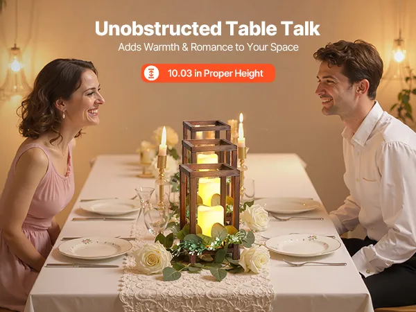 Reusable for Multi-Scenario: Our lantern centerpiece is compact for placing on dining tables, reception desks, bookshelves, TV stands, and nightstands. Great for weddings, family dinners, or festivals like Valentine’s Day, Christmas, and Thanksgiving