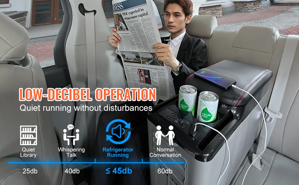Silențios și eficient energetic: Frigiderul funcționează cu un nivel de zgomot ≤ 45dB, asigurându-vă un somn odihnitor după călătorii lungi cu mașina. De asemenea, puteți alege între modurile ECO și Max prin intermediul ecranului tactil LCD. În modul de economisire a energiei ECO, puterea de funcționare a acestui frigider portabil este mai mică de 38W. Chiar și atunci când funcționează în modul MAX (44W), circulația inteligentă a aerului consumă mai puțin de 1 kWh/zi.