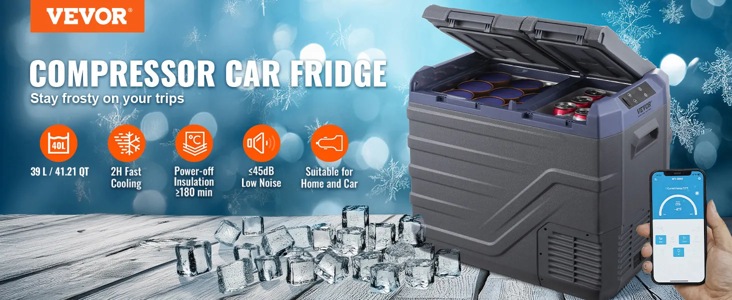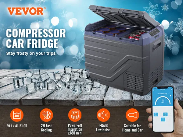 39 liters bilkylskåp med uppgraderad kompressor för snabb kylning på 1,5 timmar, kan förvaras vid både höga och låga temperaturer och bibehåller utmärkt drift mellan 16 ~ 38 ℃ / 60,8 ~ 100,4 ℉.