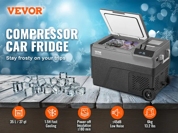 35-litrová chladnička do auta je vybavená vylepšeným kompresorom pre rýchle chladenie už za 1,5 hodiny. Obsahuje funkciu výroby ľadu, ktorá denne vyprodukuje 6 kg ľadu a funguje dobre v širokom teplotnom rozsahu od 16 do 38 °C.