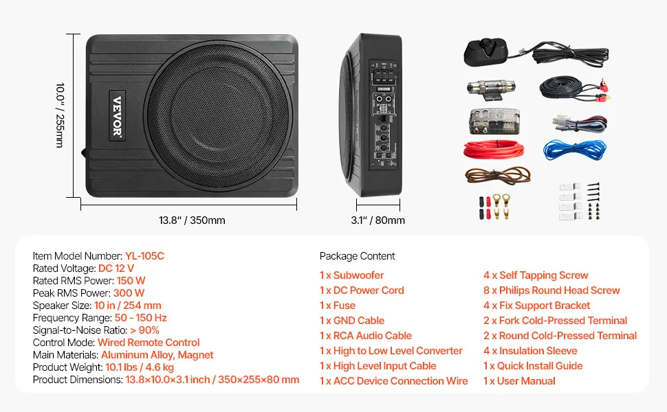 With a detailed user manual and all necessary cables and hardware, the installation of this compact under seat car subwoofer is a breeze for both DIY enthusiasts and professional installers. Remember to disconnect the negative battery terminal during installation for safety.
