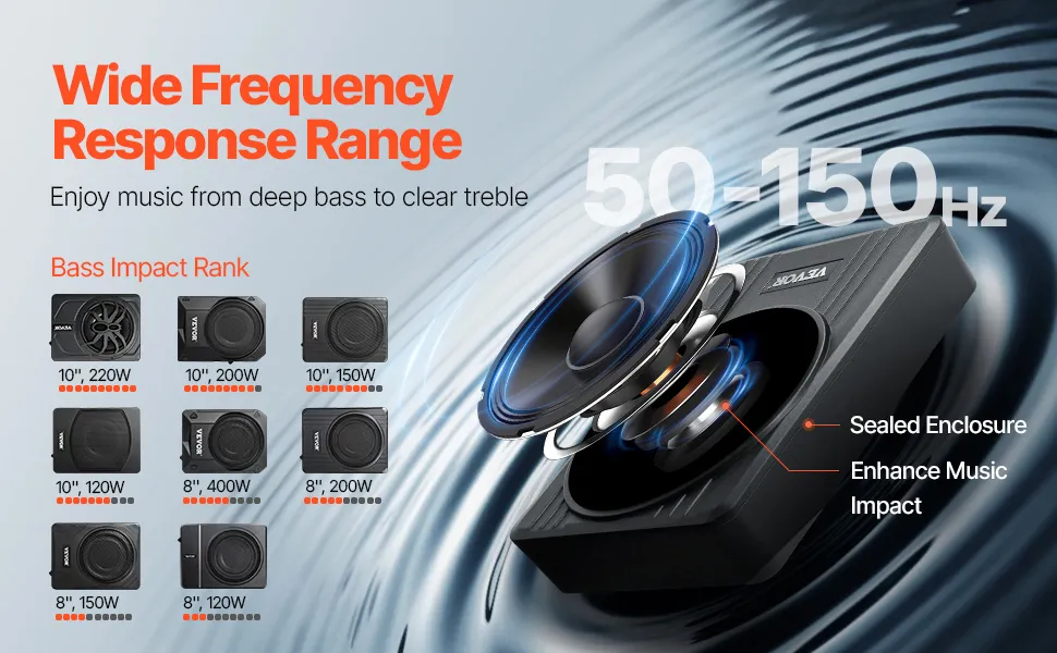 Powerful Bass Experience: 50-150 Hz wide frequency response range covers the essential low-frequency spectrum, delivering a more balanced and complete auditory experience from bass to treble. The sealed enclosure enhances music depth and impact, ideal for genres that require strong rhythms and bass support, such as R&B, hip-hop, electronic dance music, and rock.