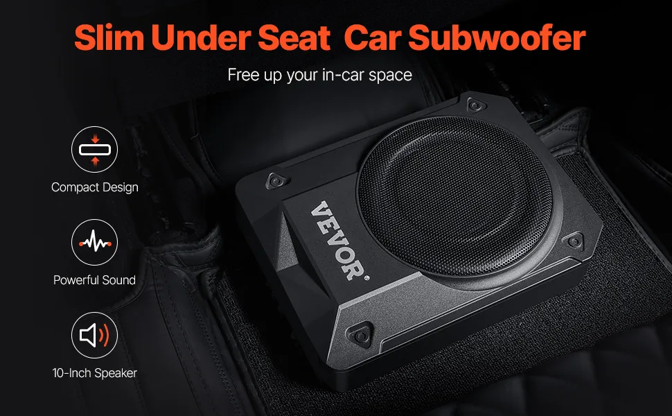 Slim and Compact: Our ultra-slim 3.3-inch under seat car subwoofer, with a built-in amplifier, fits seamlessly under your car seat, maximizing space while enhancing your car audio system. Enjoy deep, powerful bass and immersive sound quality, making every drive more enjoyable.