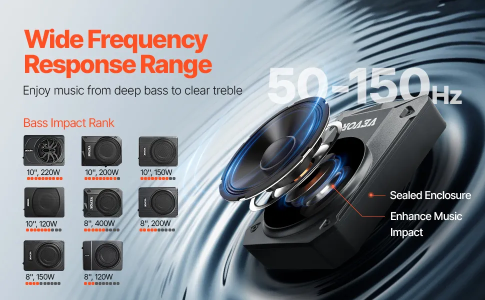 Powerful Bass Experience: 50-150 Hz wide frequency response range covers the essential low-frequency spectrum, delivering a more balanced and complete auditory experience from bass to treble. The sealed enclosure enhances music depth and impact, ideal for genres that require strong rhythms and bass support, such as R&B, hip-hop, electronic dance music, and rock.