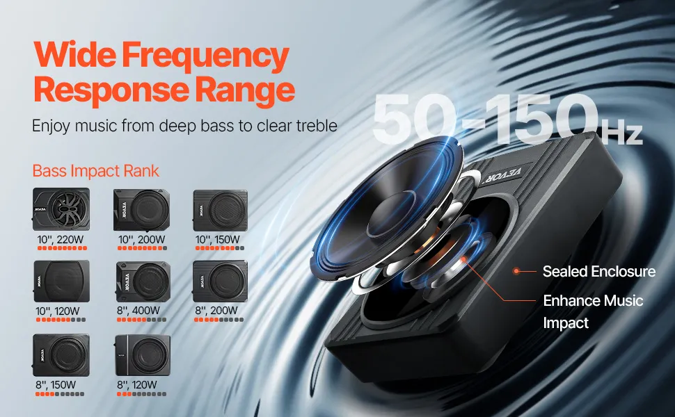 Powerful Bass Experience: 50-150 Hz wide frequency response range covers the essential low-frequency spectrum, delivering a more balanced and complete auditory experience from bass to treble. The sealed enclosure enhances music depth and impact, ideal for genres that require strong rhythms and bass support, such as R&B, hip-hop, electronic dance music, and rock.