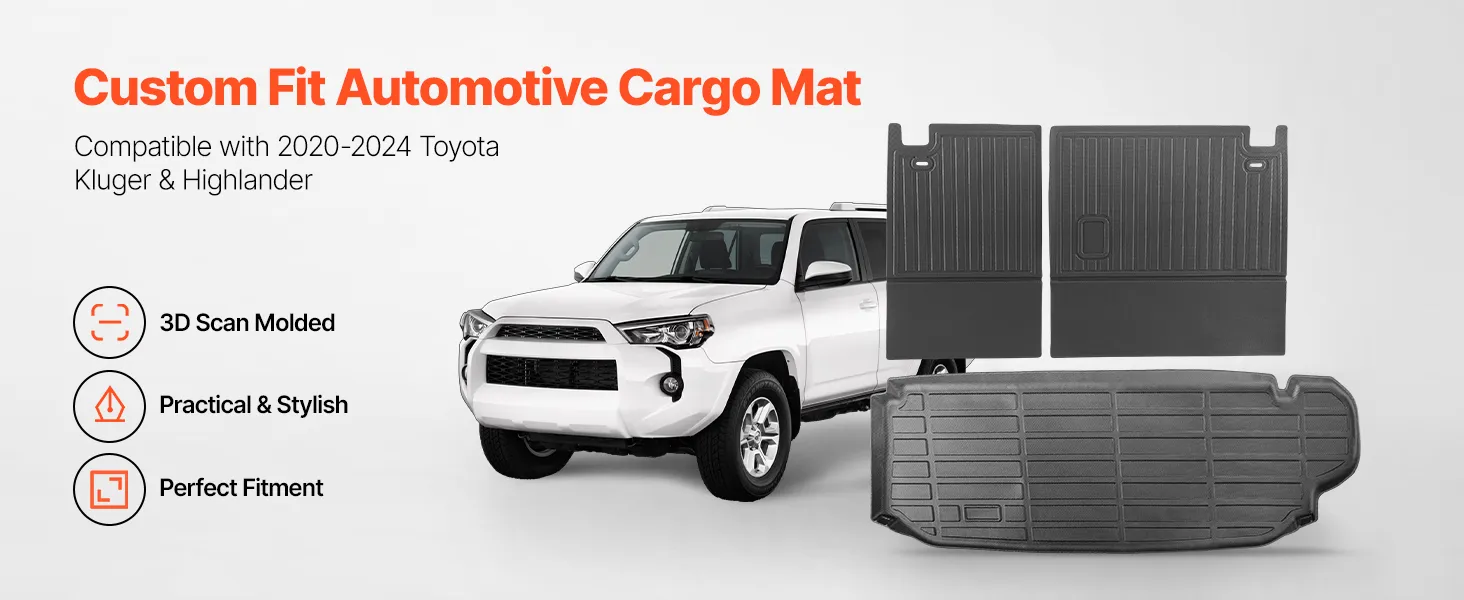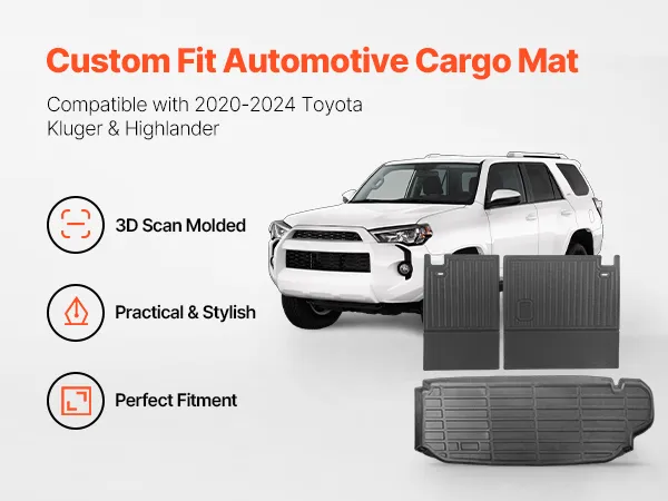 Το ειδικά κατασκευασμένο πατάκι αποσκευών με πλάτη καθίσματος είναι συμβατό με τα μοντέλα Toyota Kluger & Highlander 2020-2024. Διαθέτοντας ακριβή χύτευση με τρισδιάστατη σάρωση λέιζερ, εύκολη εγκατάσταση Velcro και υλικό TPE ανθεκτικό σε όλες τις καιρικές συνθήκες, εξασφαλίζει τέλεια εφαρμογή και διατηρεί το εσωτερικό του αυτοκινήτου σας καθαρό και άψογο.