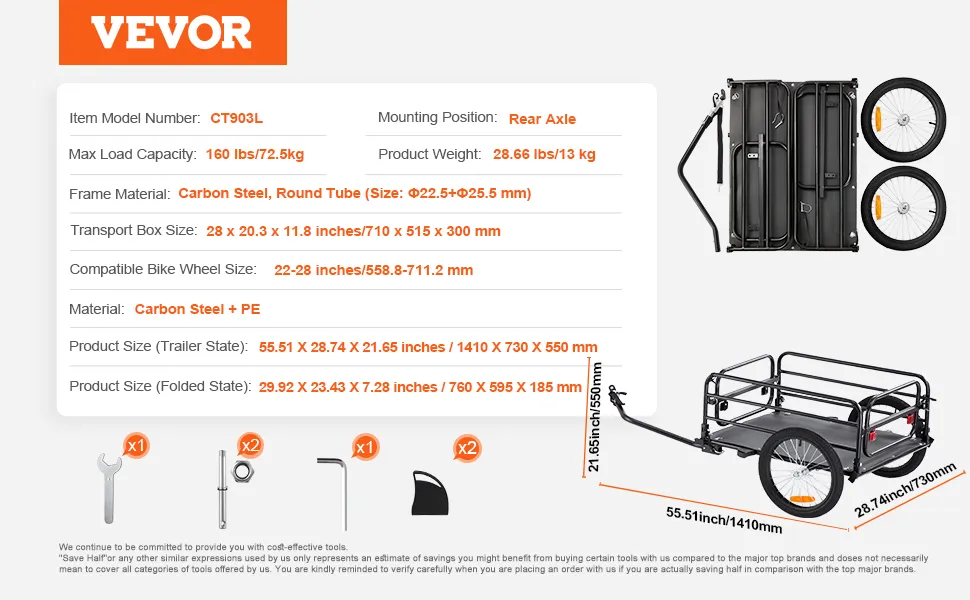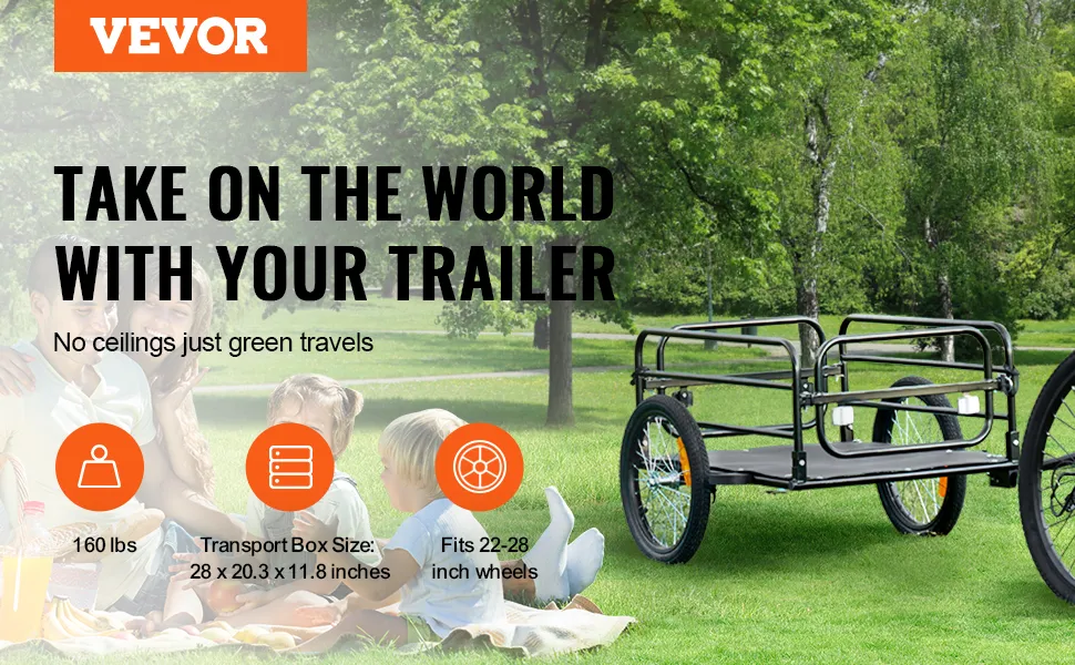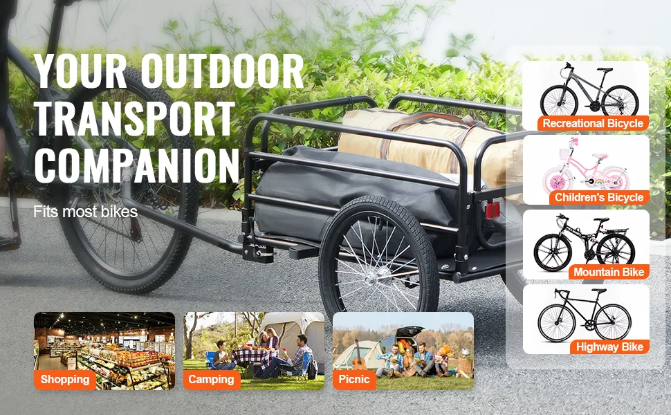 The VEVOR bike cargo trailer has a 160 lb load capacity. It’s perfect for camping, picnics, and shopping. You can carry all your essentials easily. The strong build ensures the trailer can handle heavy loads without compromising stability. This makes it ideal for long trips or carrying bulky items. Whether you're going on a weekend adventure or just running errands, this trailer has you covered. High load capability means you can bring along everything you need without worrying about weight limits.