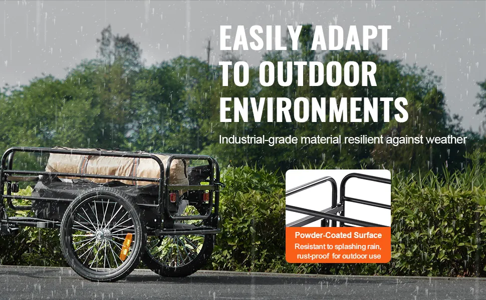 This heavy-duty bicycle cart has a durable steel frame. The powder-coated surface provides rust resistance, ensuring long-term use. This attention to quality means the trailer stays clean and looks sleek. It's built to withstand various weather conditions and road types. You can depend on its sturdy construction for all your hauling needs. The design promises reliability, so you can invest in this if you need dependable bike trailers.