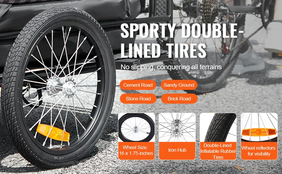 This is the best feature of this bike cargo trailer, which offers smooth rides on any terrain. The sporty tires and iron hubs provide excellent stability and traction. Navigate concrete, gravel, and sandy trails with ease. Professional tire design ensures that you can travel smoothly no matter where you're going. It makes it perfect for different outdoor activities. Enjoy an easy ride, whether you're on a lazy path or if you have to hike rocky trails, too! The trailer's versatility in handling various terrains stands out.