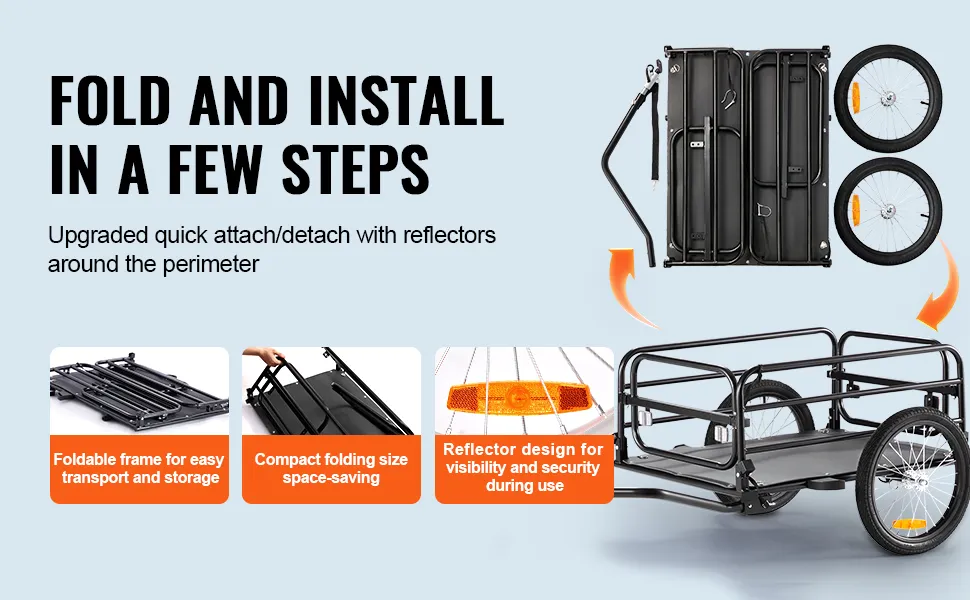 Setting up the VEVOR foldable bike trailer is easy. It has a user-friendly design and a complete toolkit. Installing it is so easy! The gold-colored spoke reflectors enhance your visibility during nighttime rides, ensuring your safety on the road. An easy setup means you can start using the trailer quickly. The reflectors make it easier for others to see you, particularly in dim lighting conditions. This safety feature is crucial for nighttime adventures too.