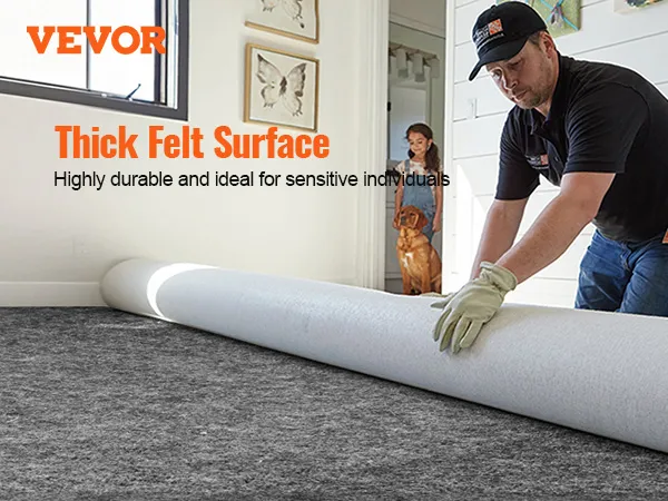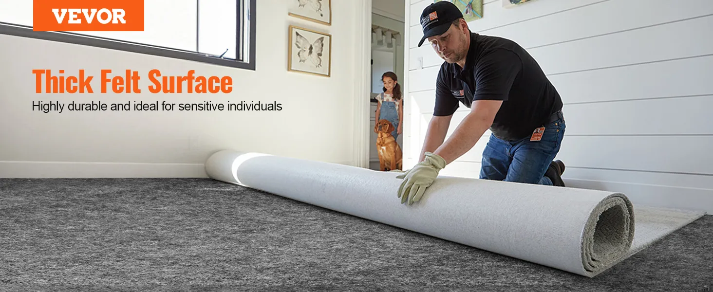 Nízký obsah alergenů: Tato podložka pod koberec má povrch z čistého polyesterového filcu, bez latexu nebo dalších protiskluzových složek, díky čemuž je ideální pro citlivé uživatele. Zajišťuje pohodlí a bezpečnost a zároveň chrání vaše podlahy a koberce.