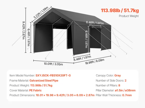 Removable Sidewalls and Zipper Door: The heavy duty car port features removable sidewalls and a zipper door for ventilation. You can roll up or remove the door and sidewalls, leaving just the canopy for outdoor activities.