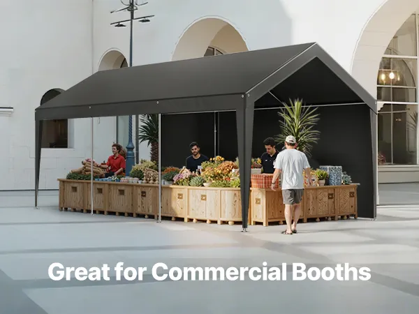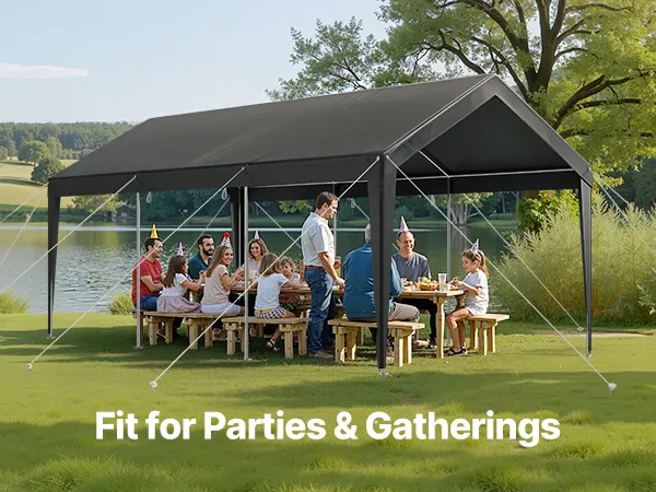 Car canopy offers 10×20 ft area featuring a galvanized steel frame and double-layer PE-coated tarp, providing sun, rain, and wind protection for your vehicle and outdoor items year-round. Quick to assemble and built for durability, Ideal for a garage, storage, or outdoor activity space.
