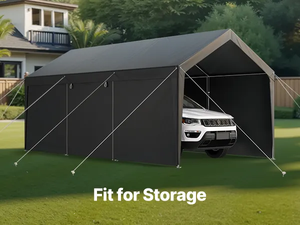 Protection from Harsh Weather: The carport features a double-coated PE tarp that is UV-resistant and waterproof, providing long-term protection for your car, RV, or outdoor equipment from rain, strong sunlight, and natural elements like dust.