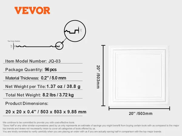 Zesílená konstrukce: S výškou 0,4 palce tyto dlaždice snadno pokryjí staré stropy. Každá dlaždice má tloušťku 0,2 palce a váží 1,37 unce, což zajišťuje pevnost i lehkost. Svítidla instalujte na pevný podklad. Tato přidaná tloušťka také pomáhá zlepšit izolaci a akustické vlastnosti vašeho stropu.