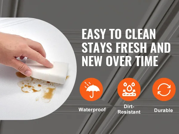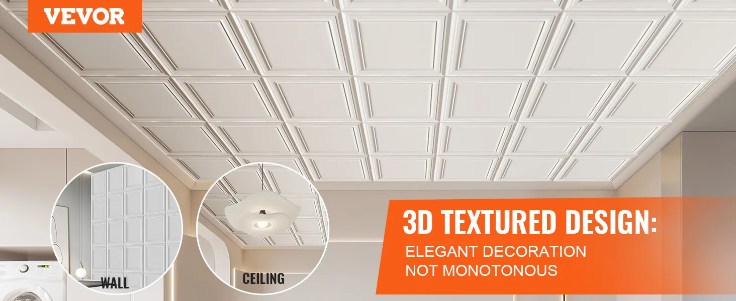 Prémiový PS: Tyto dlaždice jsou vyrobeny z vysoce kvalitního materiálu PS, jsou vodotěsné, odolné vůči skvrnám a lehké. Snadno přilnou k většině stropních povrchů, včetně stropů typu popcorn.