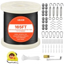 VEVOR stålvajersats, 1/8" 100 fot 304 rostfritt stålvajer med 59 tillbehör, 650 lbs brottstyrka, 7x7 trådar konstruktion marin flygplanskvalitet för ledstång trappstäckning utomhus